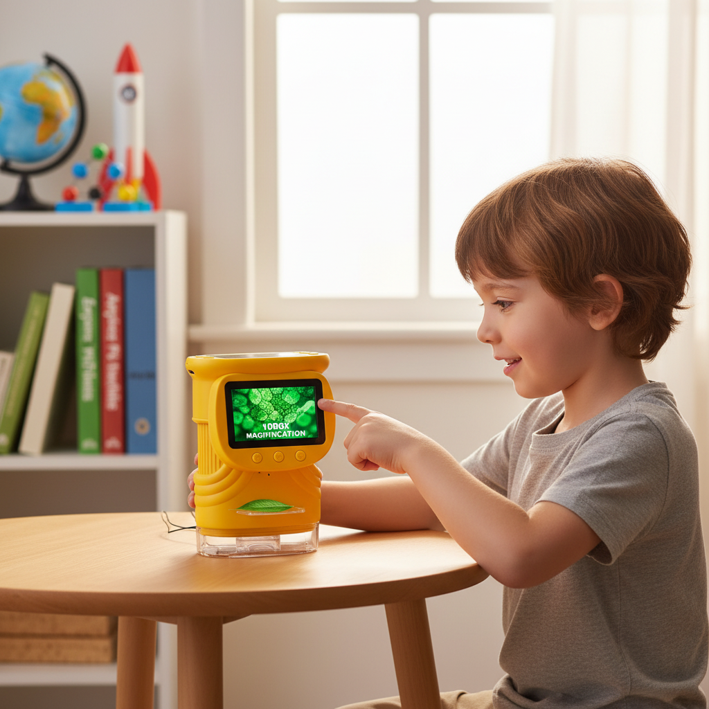 Découvrez un univers invisible avec ce microscope portable 1000X. Écran intégré, facile à utiliser, parfait pour jeunes scientifiques.