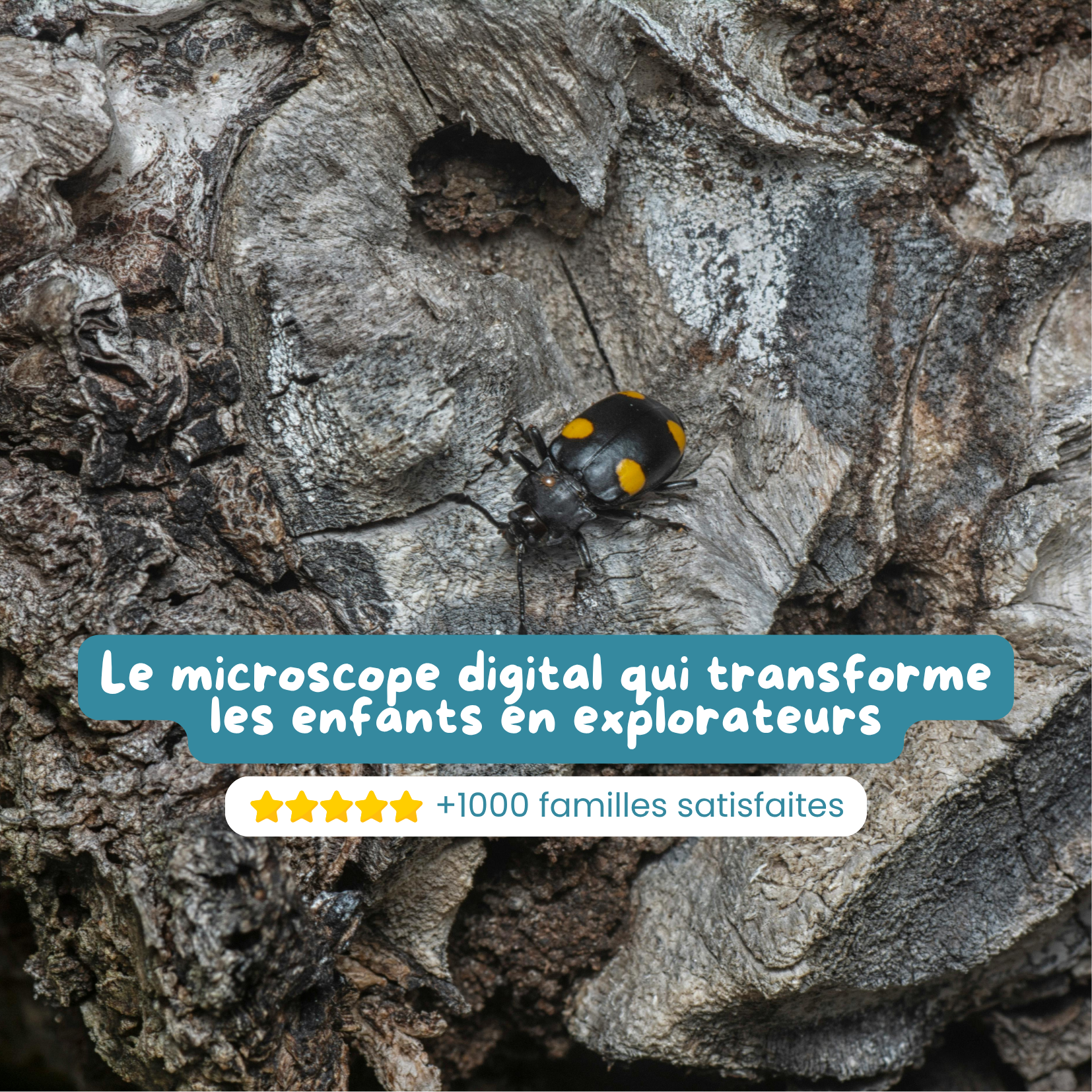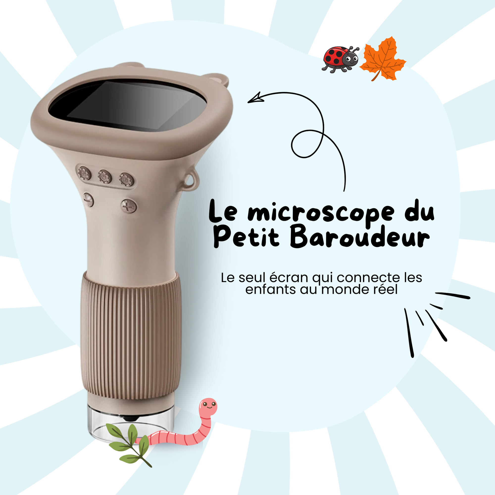Le microscope digital conçu pour les petits baroudeurs. Robuste, intuitif et fascinant, il suffit de poser un objet dessous et d'observer l'invisible s'animer sur l'écran intégré.