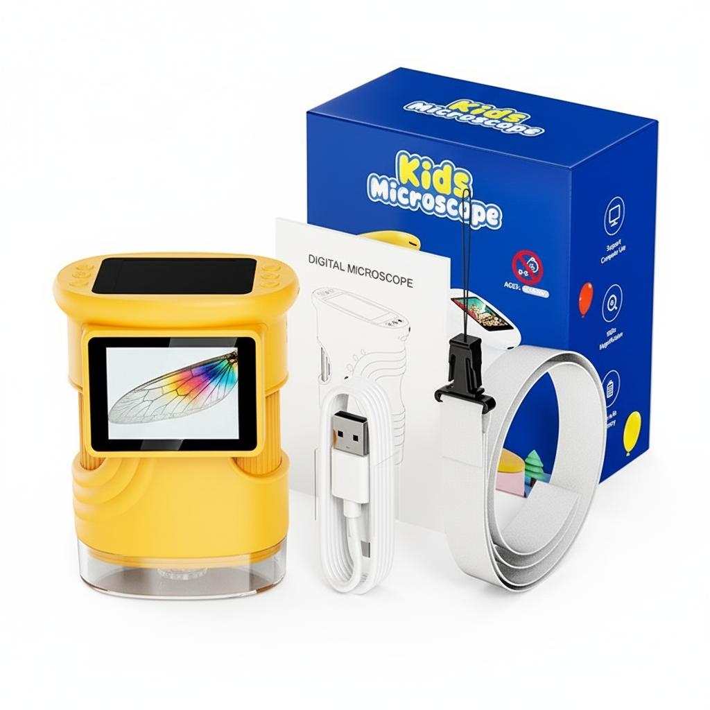 Découvrez un univers invisible avec ce microscope portable 1000X. Écran intégré, facile à utiliser, parfait pour jeunes scientifiques.